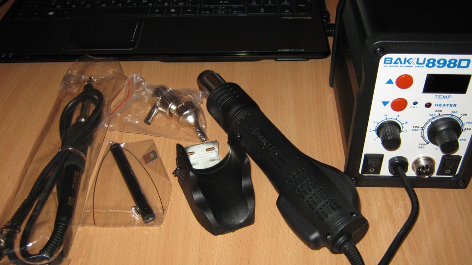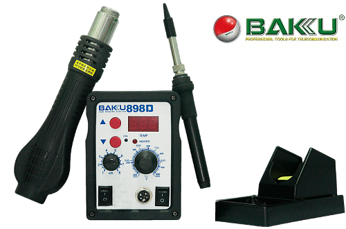 As a result of searches very interesting product of the Chinese industry under the name "Thermoair Soldering Station "Baku" BK-898D" the Name of the BAKU brand in this case purely conditional was found. The same device is issued also under other brands. Everything generalizes them two moments: in the name there is "898D" also an appearance: all of them become in the same body with the same governing bodies. This product that at the cost of it is not just the hair dryer, and the whole soldering station is interesting! I.e., in addition to the hair dryer, it has a soldering iron with maintenance of the set sting temperature. This device was ideally suited on all conditions: cost at the time of writing of this overview – 2100r, the "correct" hair dryer, a digital control temperature of the hair dryer and display of temperature, small dimensions, "quiet" design. What else is necessary to the beginning radio fan? Correctly! Soldering iron. And it is here! And my old asks on replacement for a long time. A choice is made, the product is purchased.